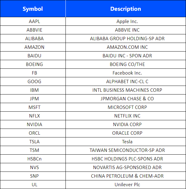 All VT Markets clients can trade the 20 U.S. stock contracts listed in the table below on the preferential terms of 0 commission from March 28th.