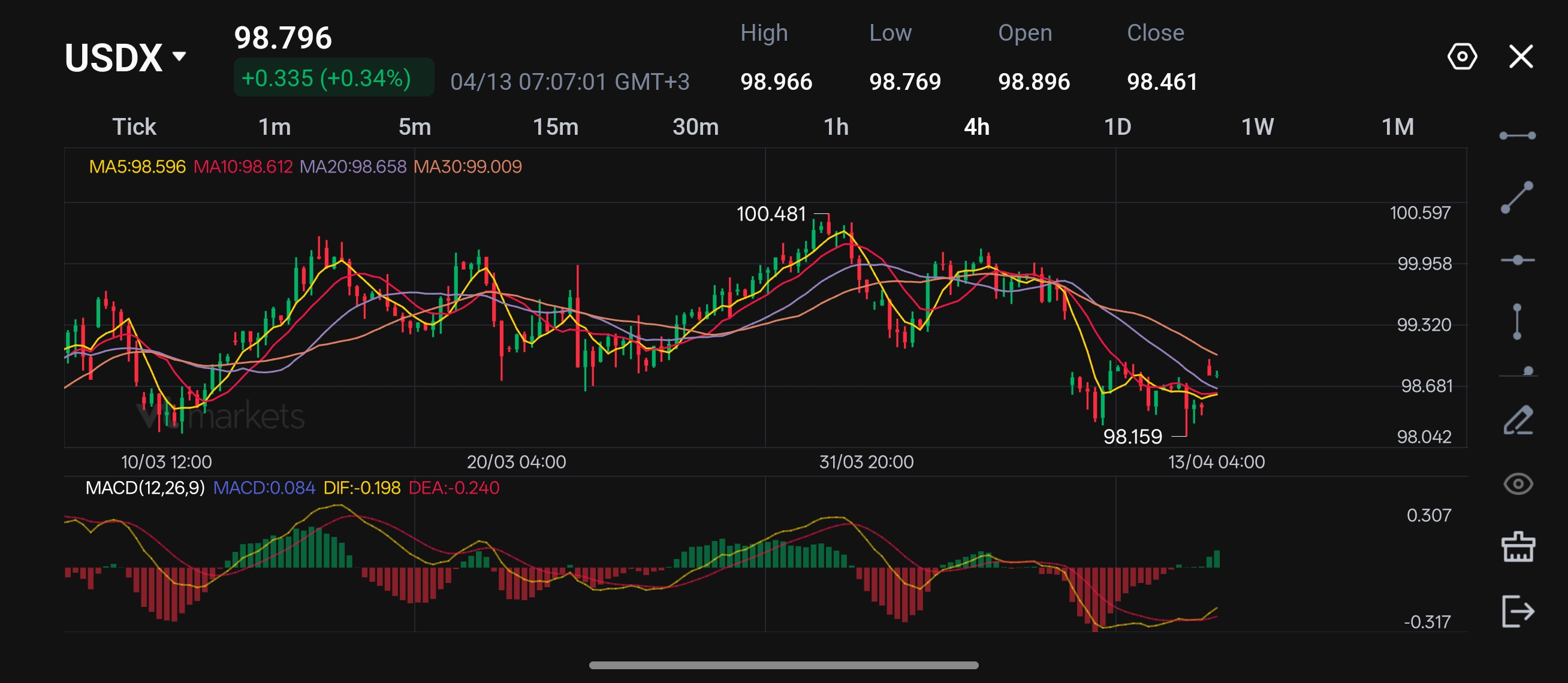 • USDX diperdagangkan di sekitar 99,06, bertahan dekat level tertinggi sejak 7 April. (USDX/DXY adalah Indeks Dolar AS, yaitu ukuran kekuatan dolar AS dibanding “keranjang” enam mata uang utama.)