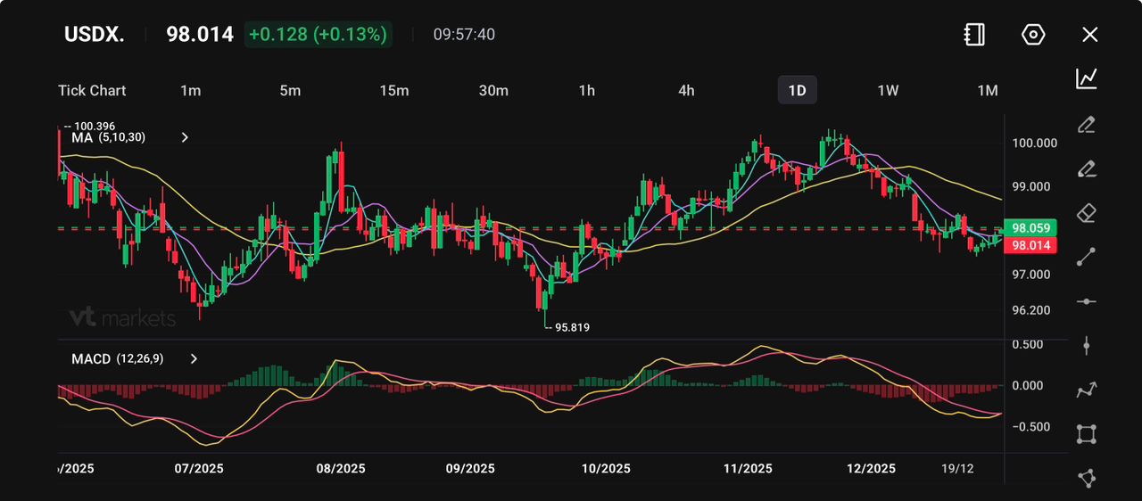 Hanya penutupan berkelanjutan di atas 99.00 yang akan menunjukkan pemulihan yang lebih kuat menuju Q1 2026.