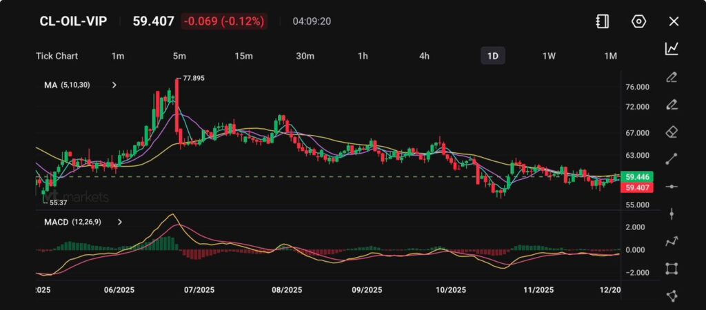 Sementara itu, OPEC+ menegaskan kembali peningkatan output kecil untuk bulan Desember tetapi mengonfirmasi akan menunda peningkatan pada Q1 2026, dengan alasan permintaan global yang melemah dan risiko kelebihan pasokan.