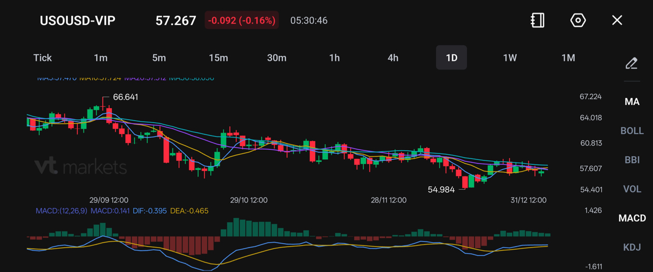 Level resistensi berikutnya untuk USOIL diperkirakan berada di $58.50. Harga dapat tembus di atas level ini dan berpotensi membentuk tinggi baru untuk 2026.