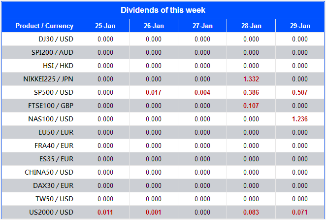 Warmly reminds you that the component stocks in the stock index spot generate dividends. When dividends are distributed, VT Markets will make dividends and deductions for the clients who hold the trading products after the close of the day before the ex-dividend date.