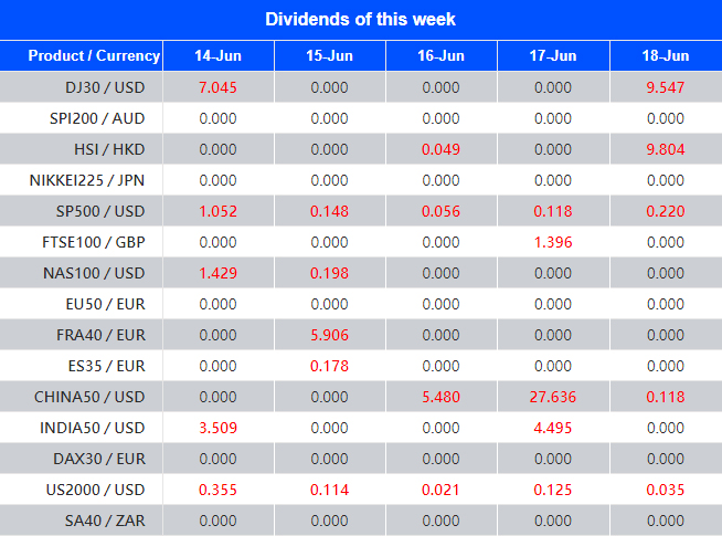 Warmly reminds you that the component stocks in the stock index spot generate dividends. When dividends are distributed, VT Markets will make dividends and deductions for the clients who hold the trading products after the close of the day before the ex-dividend date.