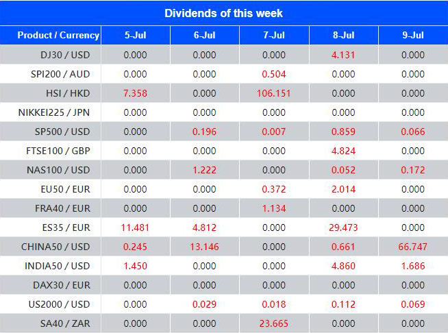 Warmly reminds you that the component stocks in the stock index spot generate dividends. When dividends are distributed, VT Markets will make dividends and deductions for the clients who hold the trading products after the close of the day before the ex-dividend date.