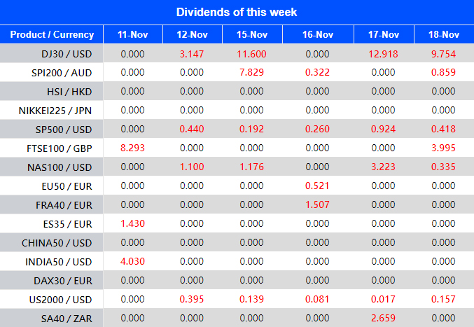 Warmly reminds you that the component stocks in the stock index spot generate dividends. When dividends are distributed, VT Markets will make dividends and deductions for the clients who hold the trading products after the close of the day before the ex-dividend date.