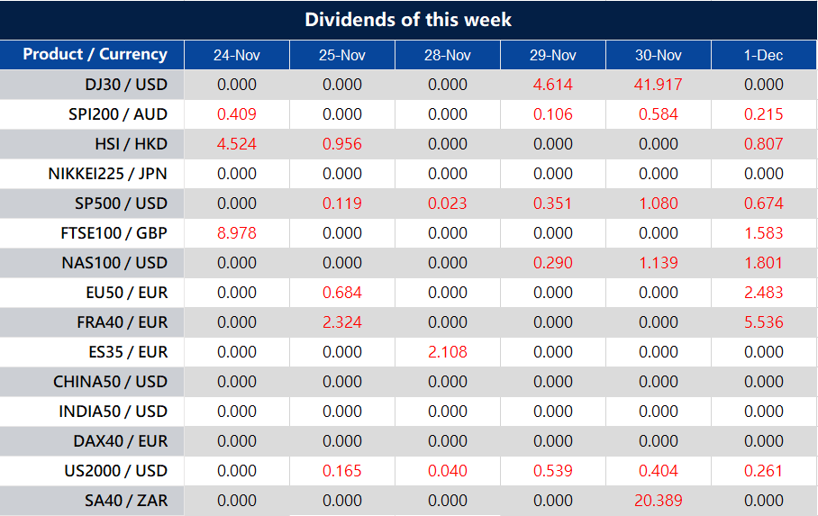 Warmly reminds you that the component stocks in the stock index spot generate dividends. When dividends are distributed, VT Markets will make dividends and deductions for the clients who hold the trading products after the close of the day before the ex-dividend date.