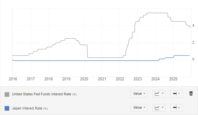 Menjelang akhir 2024 dan awal 2025, USD/JPY kembali naik ke kisaran 150–160, dan penggunaan utang sedikit demi sedikit meningkat.