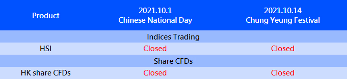 Please note that adjustment on following products due to Chinese National Day ,and Chung Yeung Festival.