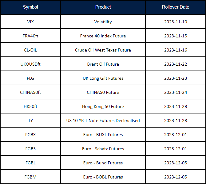 • To avoid CFD rollovers, clients can choose to close any open CFD positions prior to the expiration date.