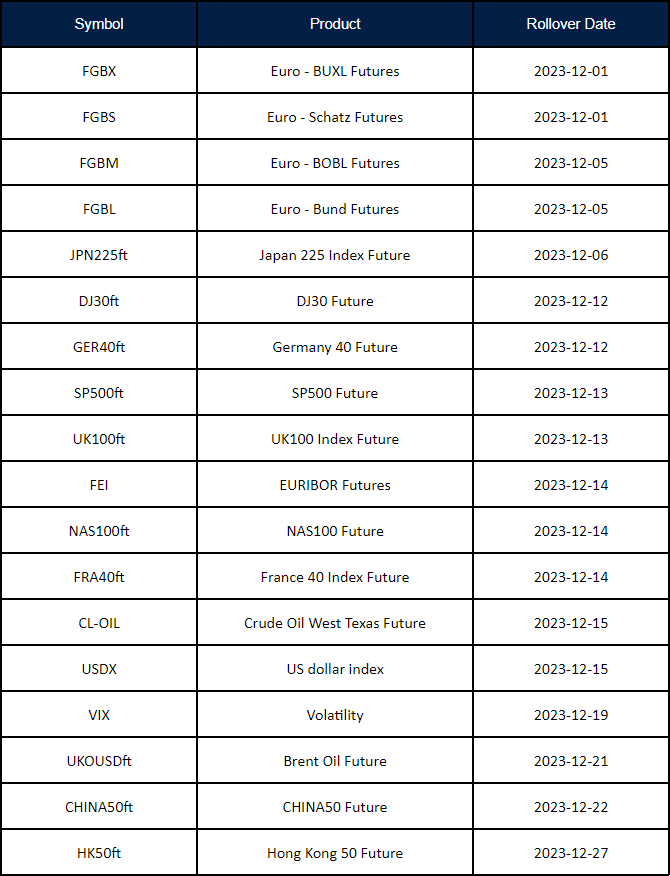 • To avoid CFD rollovers, clients can choose to close any open CFD positions prior to the expiration date.