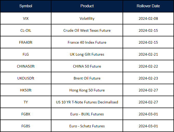 • The rollover will be automatic, and any existing open positions will remain open.