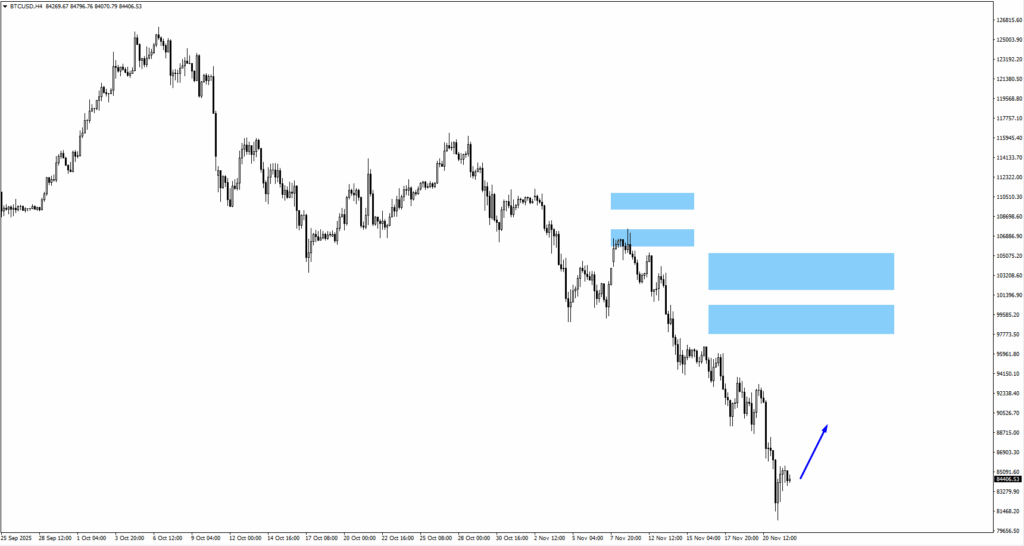 Imbal hasil yang lebih rendah mendorong penguatan ekuitas dan membebani dolar. Imbal hasil Treasury 2 tahun merosot ke level 3,5%, sementara perusahaanperusahaan AI dan teknologi memimpin reli. Aksi jual Bitcoin dan Ethereum telah melemah, sejalan dengan rotasi “riskon” yang lebih luas dan ringan yang didorong oleh imbal hasil yang lebih rendah dan meningkatnya ekspektasi penurunan suku bunga pada bulan Desember.