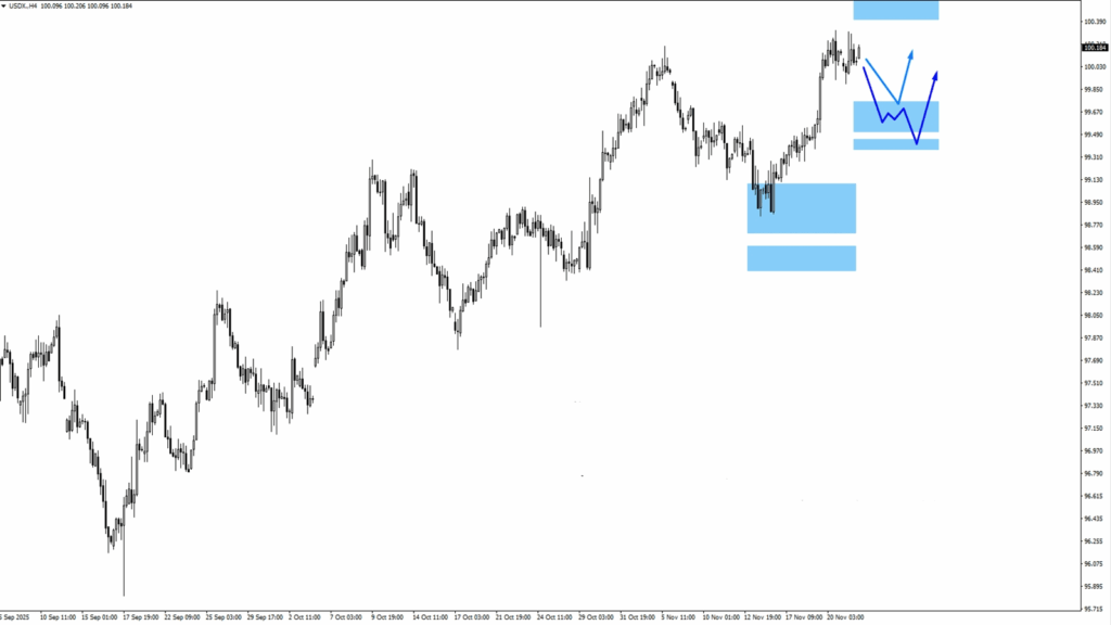 - USDX melemah dari puncaknya, menguji zona 99,65 sebagai support.