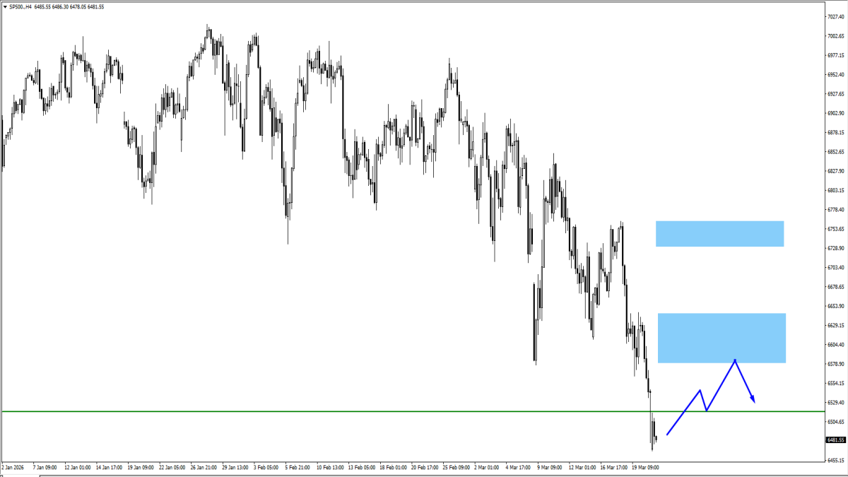 • Zona pantulan bearish (pantulan dalam tren turun) di 6600 dan 6750.