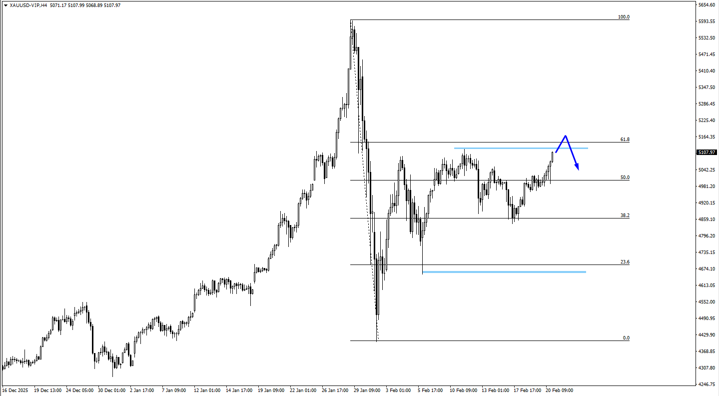 • XAUUSD naik ke sekitar $5.170 pada perdagangan awal Asia hari Senin, mendekati resistensi Fibonacci 61,8% di 5164,35.