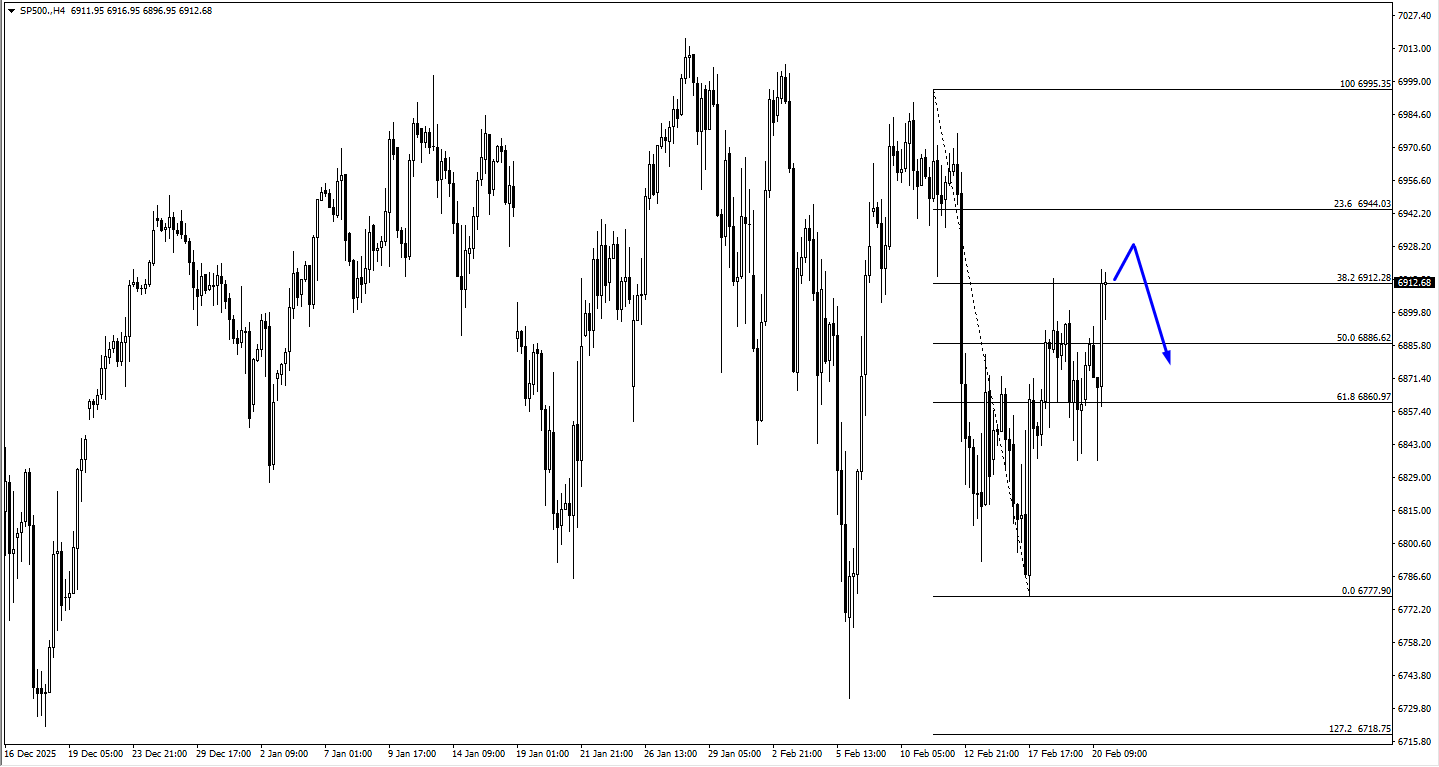 • SP500 diperdagangkan di sekitar 6.912, yang tepat sejajar dengan level retracement 38,2%