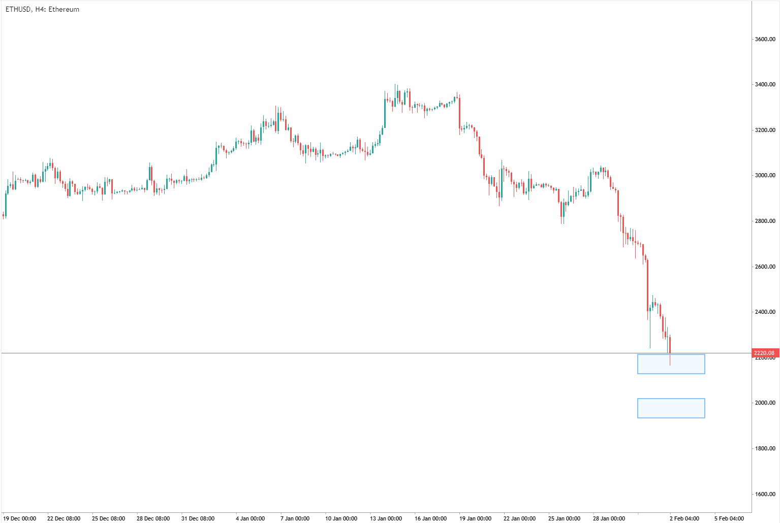 • Ethereum sedang menguji level support saat ini di harga 2200.