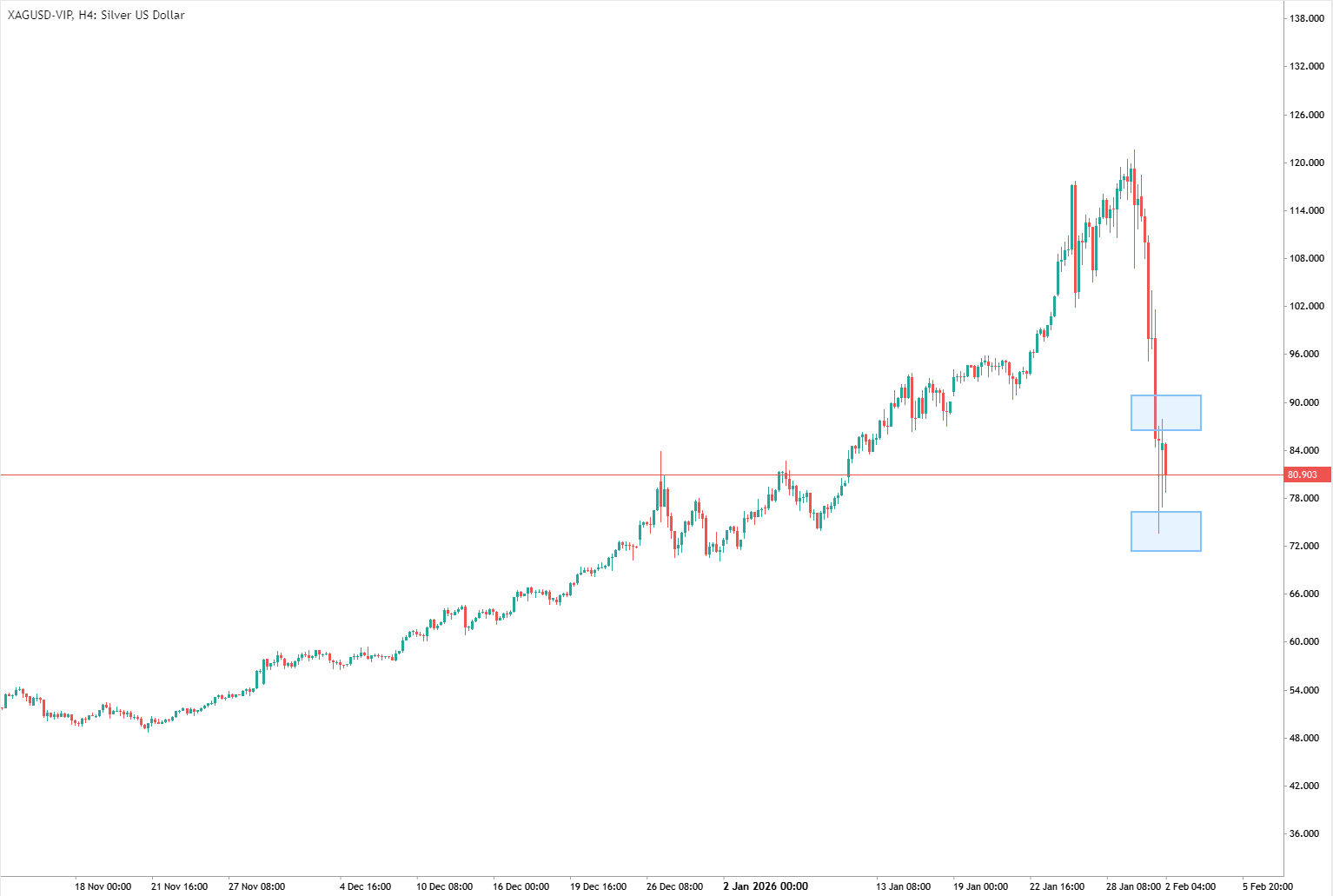 Kenaikan harga yang sebelumnya terlihat sangat kuat dan hampir menyentuh level $6.000 justru berbalik arah pada hari Jumat. Peristiwa ini kini dikenal sebagai “Black Friday” di pasar logam mulia., setelah nominasi Kevin Warsh sebagai Ketua Federal Reserve berikutnya mengejutkan pasar. Posisi pasar sangat condong ke arah dolar AS yang lebih lemah dan bank sentral yang lebih akomodatif.