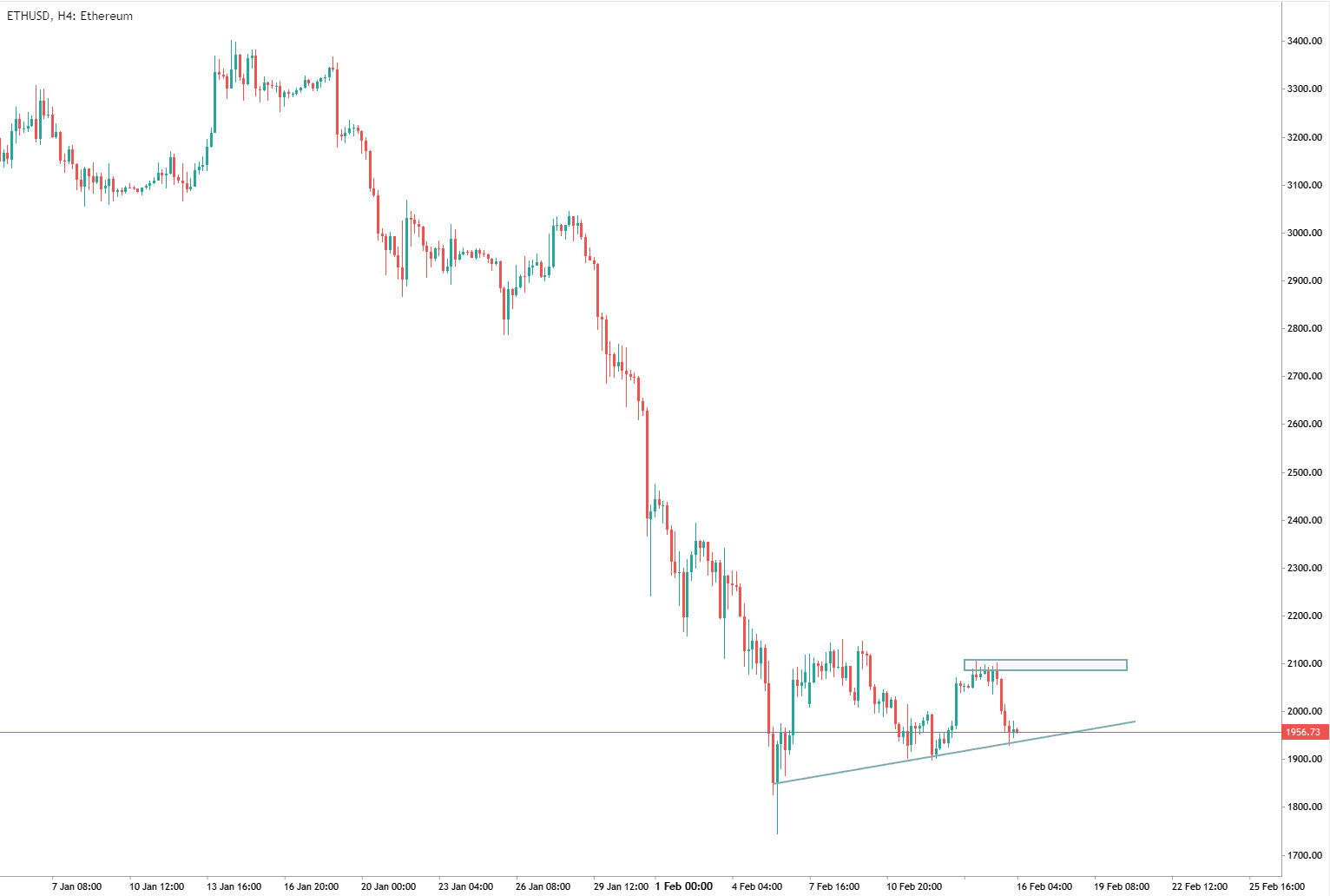 - Saat ini harga diperdagangkan di bawah $2.100, yang merupakan level resistensi utama bagi Ethereum.